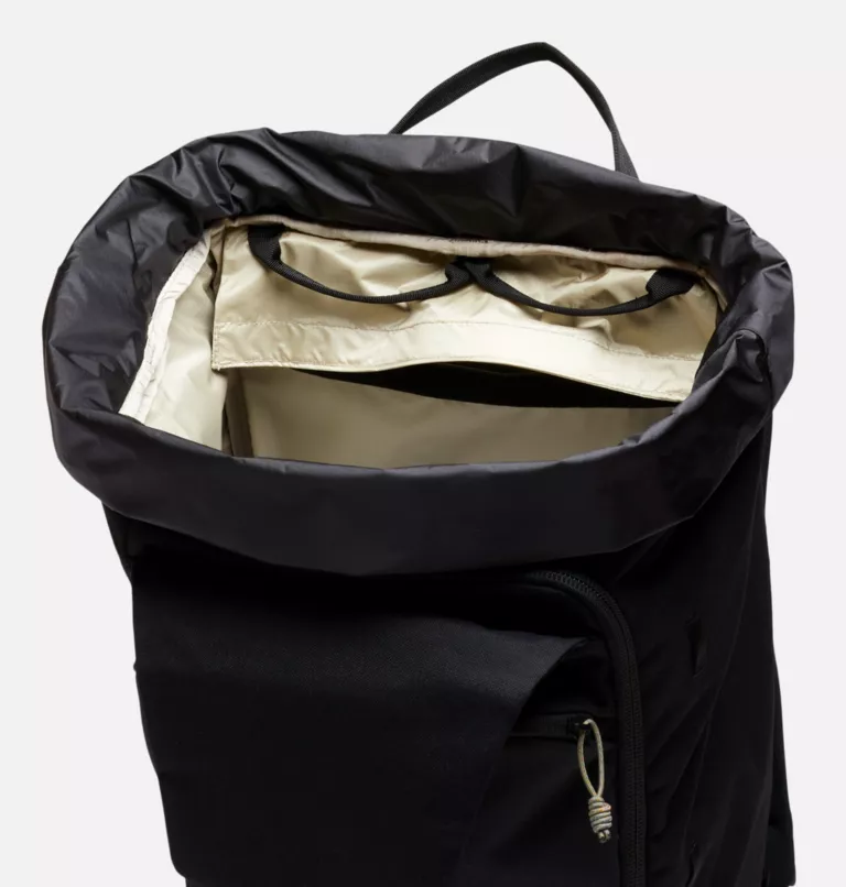 contents of the main compartment - Extra wide, fold-over skirt-collar for top loading