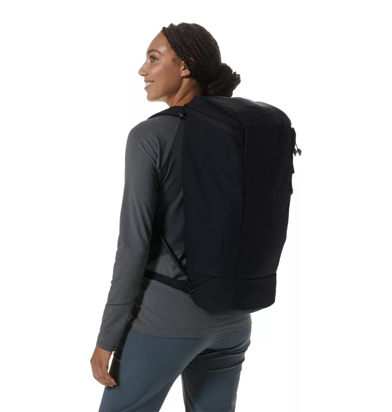 - Stowable stretch-mesh side pocket for approach versatility securely carries climbing shoes or a water bottle